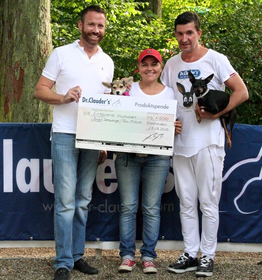 Zusammen mit Tom Fritsch und seinem Hund Ludwig (Ludwigs Welt) überbrachte Dr. Clauder-Geschäftsführer Malte Hübers am vergangenen Wochenende einen Spendenscheck zugunsten der von Max Wolfa Tierschutz betreuten Tiere. Virginia Bowles von Max Wolfa Tierschutz hatte sich zu ihrem Geburtstag Futter für die rumänischen Hunde gewünscht, ihr Wunsch wurde mit der 1.500 kg-Spende erfüllt.