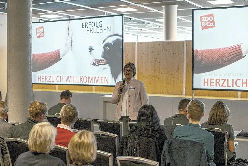 Nach dem Mittagessen standen für beide Marken gemeinsam zwei spannende Vorträge an. Im Rahmen der Präsentation „Bindung und Rohertrag durch Eigenmarke“ wurde die neue hochwertige Katzenfuttermarke Lilou & Émile in einer theaterreifen Vorstellung erstmalig präsentiert. Auch die Erweiterung der Diätfuttermarke Animal Health für den Hund wurde vorgestellt. Referent Kai-Helge Brandhorst stellte am Beispiel des neuen Moduls Tierapotheke vor, wie „Frequenz und Rohertrag durch Gesundheit“ wirksam funktioniert.
