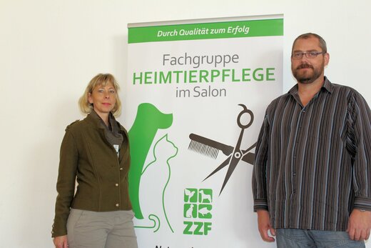Britta Mattes, die Vorsitzende der ZZF-Fachgruppe „Heimtierpflege im Salon“ mit ihrem neu gewählten Stellvertreter Falko Friemelt.