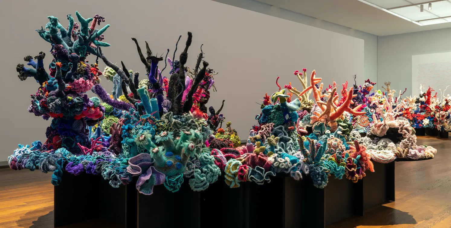 Wie sieht die Zukunft der Korallen-Riffs aus? Werden bald keine mehr existieren? Schreiten der Co2-Anstieg, die Erderwärmung und die Versäuerung der Ozeane weiter voran? Mit ihrem „gehäkelte Korallen“-Projekt wollen die beiden australischen Künstlerinnen Christine und Margaret Wertheim auf die Zerstörung des Great Barrier Reefs und der Korallen-Riffs weltweit aufmerksam machen.