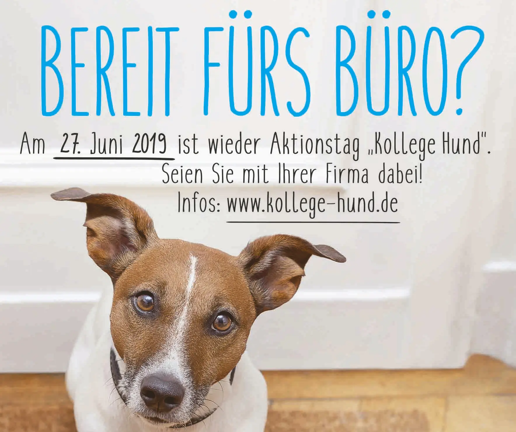 Für den 27. Juni 2019 ruft der Deutsche Tierschutzbund zusammen mit den örtlichen Tierschutzvereinen zum 12. Mal zum Aktionstag „Kollege Hund“ auf. Herrchen und Frauchen sollen an diesem Tag die Möglichkeit bekommen, ihren Liebling mit ins Büro zu nehmen.